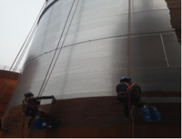 醋酸乙烯貯罐應用: 醋酸乙烯具有可燃性,對貯罐采用噴砂或手工除銹會產生火花,發生事故,造成危險。采用高耐候低表面處理金屬漆不須噴砂和除銹,可直接涂刷罐體,高效快捷。見圖10、圖11。