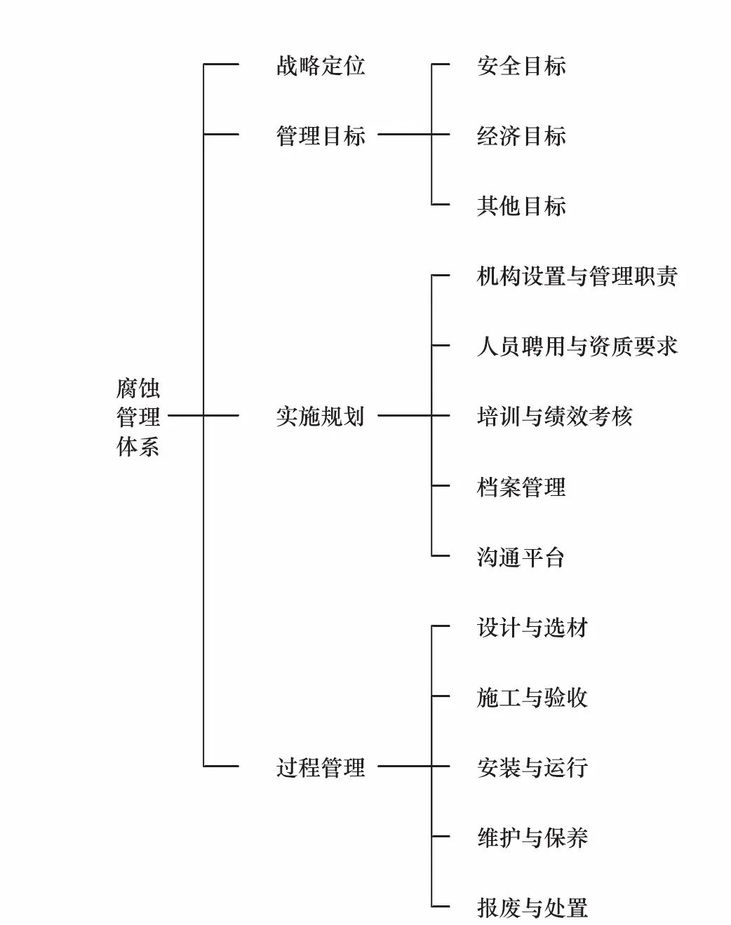 為了更好地管理腐蝕問題,應建立一套完善的、具有廣泛適用性的系統(tǒng)的管理體系,通過組織的目標、制度、程序等來管理腐蝕問題,指導組織的腐蝕管理工作。腐蝕管理體系內(nèi)涵豐富,要在實踐的過程中不斷發(fā)展完善[1,4,5]。
