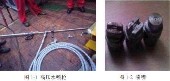 2012年~2013年之間,在我國的惠州油田分別對三種常用的海生物清理技術進行了實際作業對比,對比結果表明:高壓水沖洗技術對各種位置的海生物都可以清理,而且花費時間較短,清理效果好;空化射流技術雖然方便操作,但清理花費時間長,而且無法將高硬度的海生物清理掉;液壓打磨技術雖然清理效率較高,但無法清理部分狹小區域,而且在清理過程中設備一旦出現故障,維修起來比較麻煩。