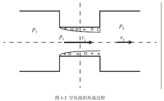 空化泡的大致形成過程如下:首先通過加壓設備將常壓水加壓成高壓水,然后將高壓水轉化為速度極高的水流束,水流束進入專用的空化噴嘴之后,速度極大的水流束帶動噴嘴內氣流急速流動,使得水流束的周圍形成負壓環境,在巨大壓差的驅使下,一部分水迅速蒸發。從而形成空化泡,空化泡的半徑通常在20μm以下,其形成過程如圖1-3所示。